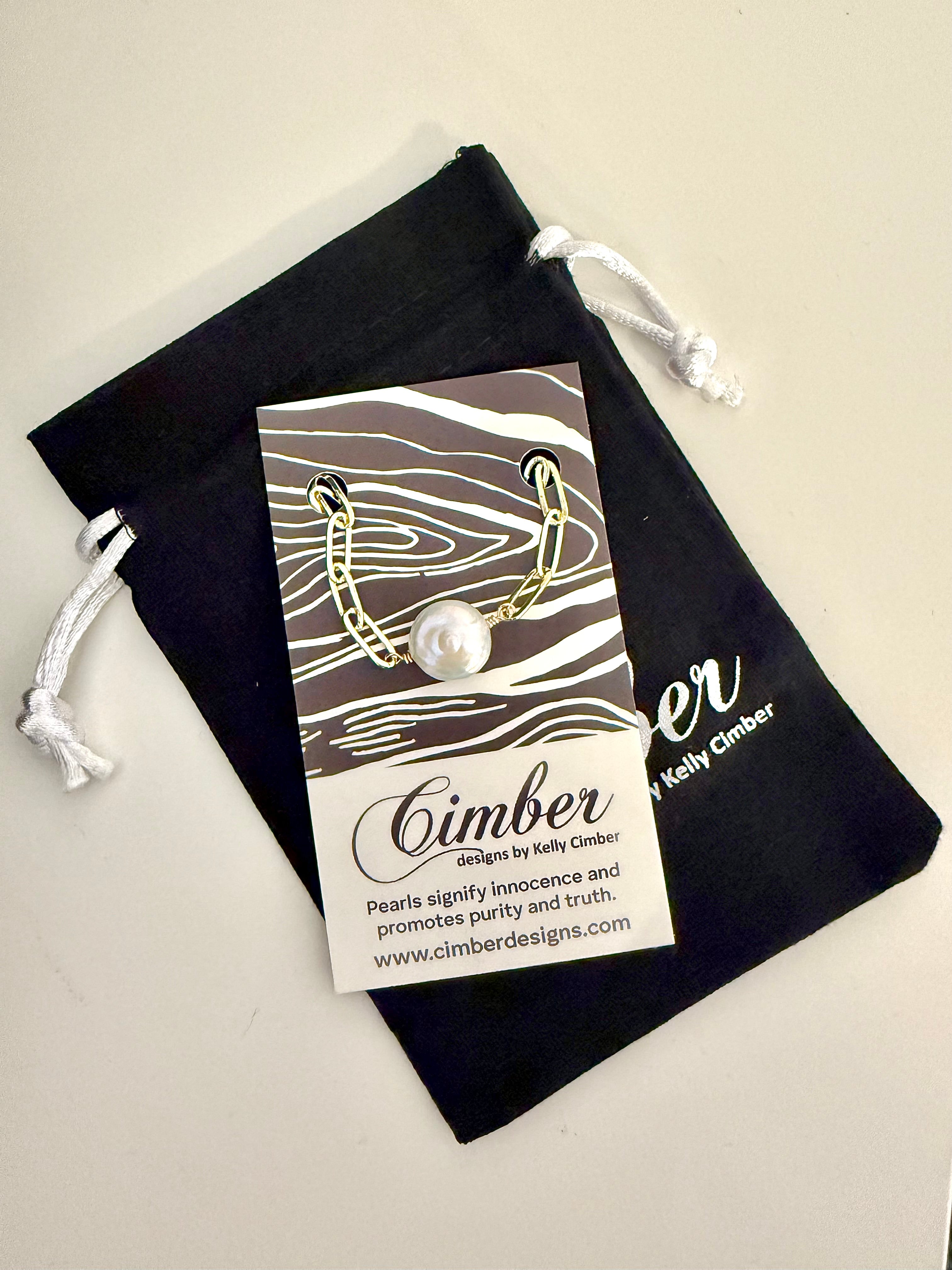 Single fresh water pearl in gold link chain 6" w/ 2.5" extender.