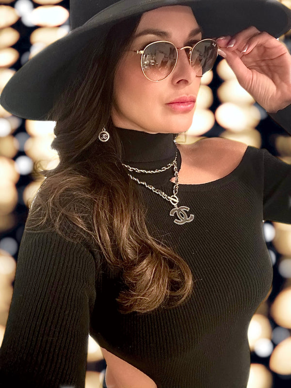 CC Blk Leather Chain Necklace