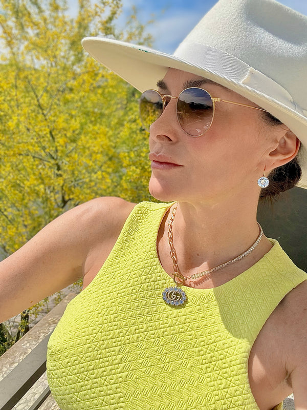 CZ GG charm on half cz and half link chain with toggle. Chain is 16.5" stainless steel and is  waterproof and tarnish resistant.   Designer buttons and/or charms are authentic, then...