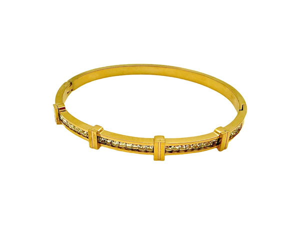 CZ crystals in gold bangle setting. Hinge opening, 17cm around, one size fits most. Stainless steel base, nickel and lead free. Tarnish and water resistant. Classic everyday bracelet, great for...