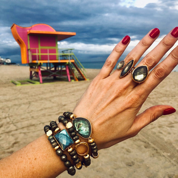 Labradorite gemstones in vermeil gold adjustable setting, 1".  Labradorite is used for transformation and change, gives balance & strength.