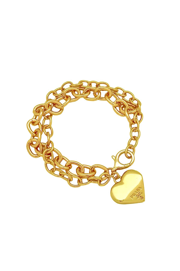 Prada gold heart charm on gold link chains, 7-8" length. Chain is 18kt triple plated with a protective coating making it tarnish resistant and high quality.  Designer buttons and/or charms...